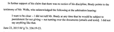 Smith: Wells did not say to Brady he’d be punished for not turning over the phone. It’s on page 24.