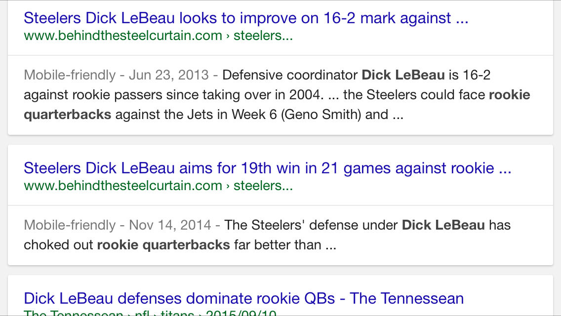 Yeah Manziel is a second-year veteran, but c’mon. What I did not count on was LeBeau still favoring the Cover Zero featured on the last play of that Steelers Wild Card overtime loss at Denver several years ago. Travis Benjamin scored two TDs off Manziel bombs, and a third on a punt return. The Browns defense reached the backfield frequently in the first half, and at halftime it was 21-0. But, the offense got some rhythm in the 3rd quarter to make it 21-14. It ended 28-14.