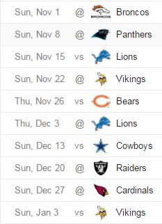 I could buy into your prediction, but I think the Panthers game is going to be tough, and the Cowboys that late (and maybe healthy) could pose an issue.