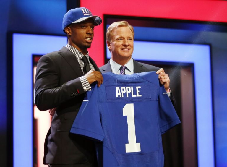 MELISSA: Oh, I’m sure they’re not boo-ing you anymore, sir. They just don’t like the pick. Apple’s got some physical talent, but he’s going to be a penalty machine at the NFL level.