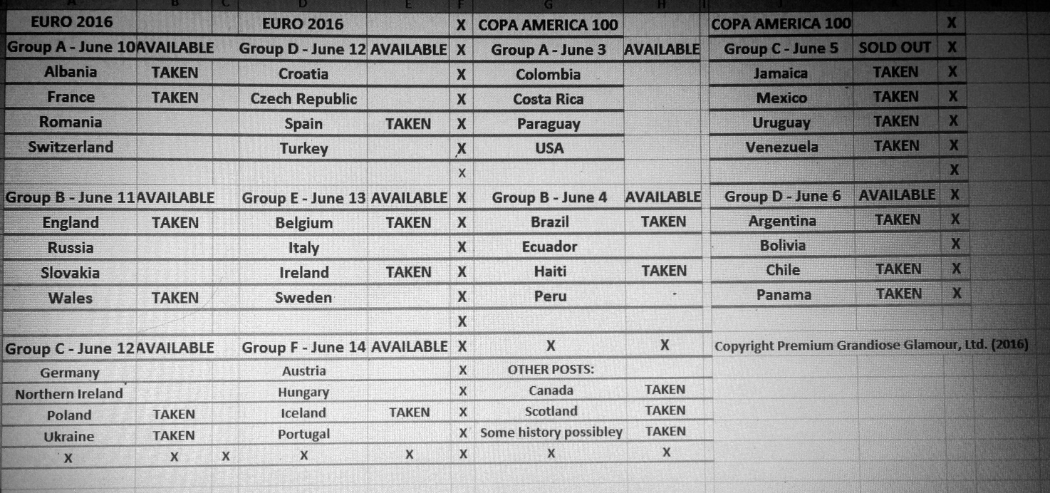 The Copa América Centenario starts on June 3. It commemorates 100 years of the Copa América, the tournament of South American nations. It will be played by 10 South American countries and México, some of which sneer at having to play the U.S.A., Panamá, Haiti, and Jamaica. Costa Rica also plays, and their goalie is one of the best in the world. The other tournament is Euro 2016 in France, who hosts 23 European countries and the winner becomes the continent’s champion.