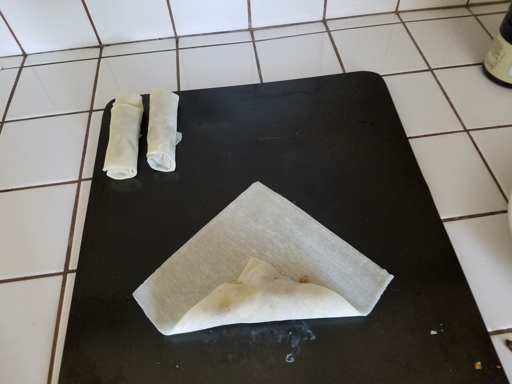1 package of frozen, or recently frozen egg roll/spring roll wraps.