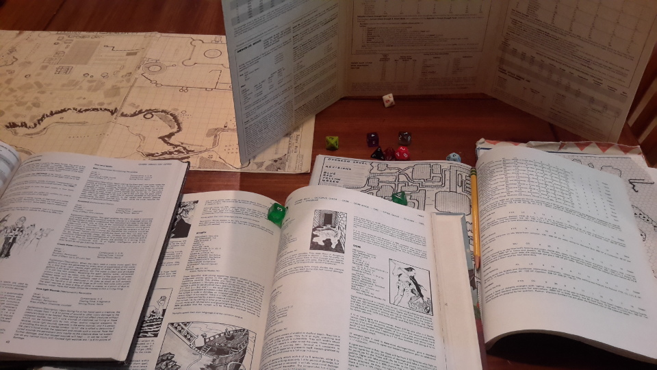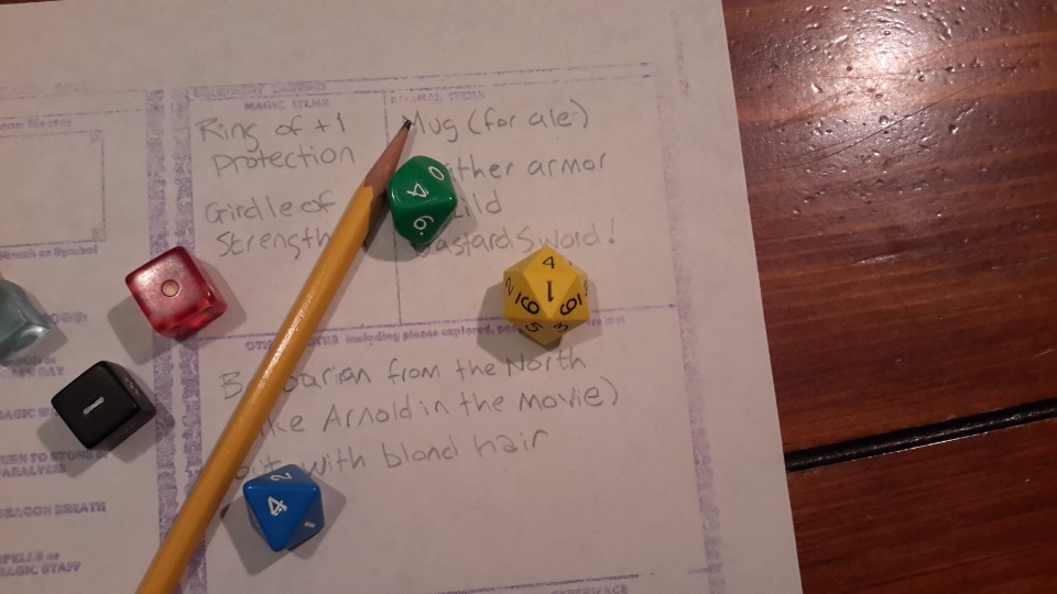 The scene: The John Tyler Junior High Dungeons & Dragons club. A young Percival Po sits behind his Dungeon Master screen, rolling a variety of polyhedral dice. Also playing are young Marc Trestmans Windowless Van, Brocky and Old School Zero.
