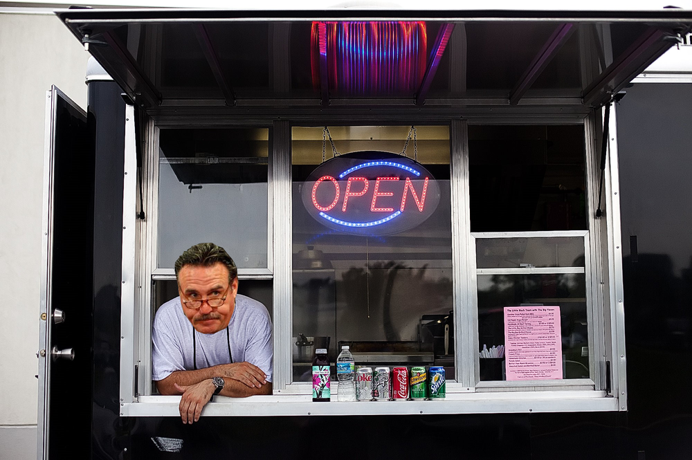 Strolling along the sidewalk at the Rose Garden in San Jose as I head into town to pick up the ticket package for the upcoming hockey season I see a food truck with a familiar face peeking out through the window…