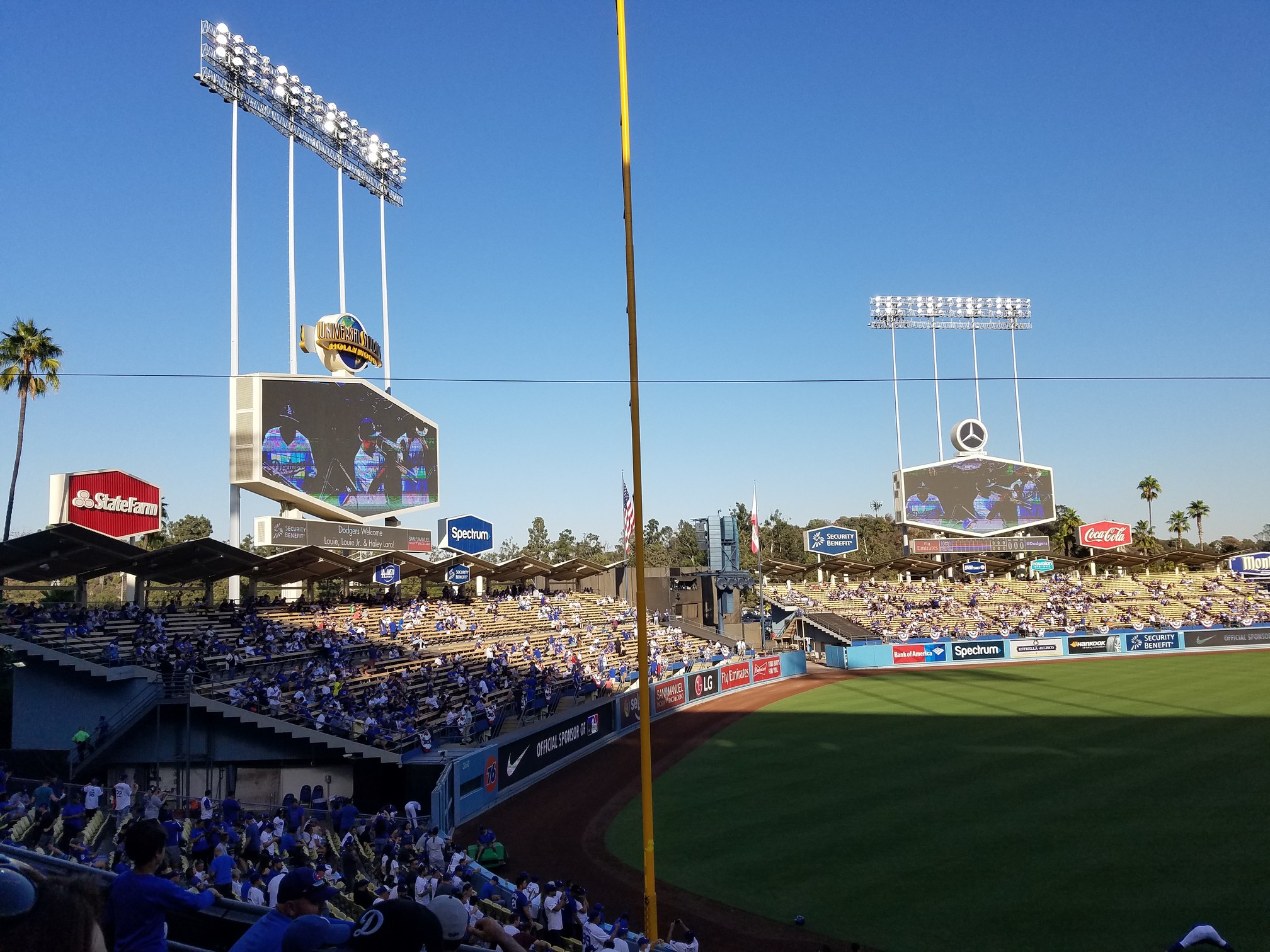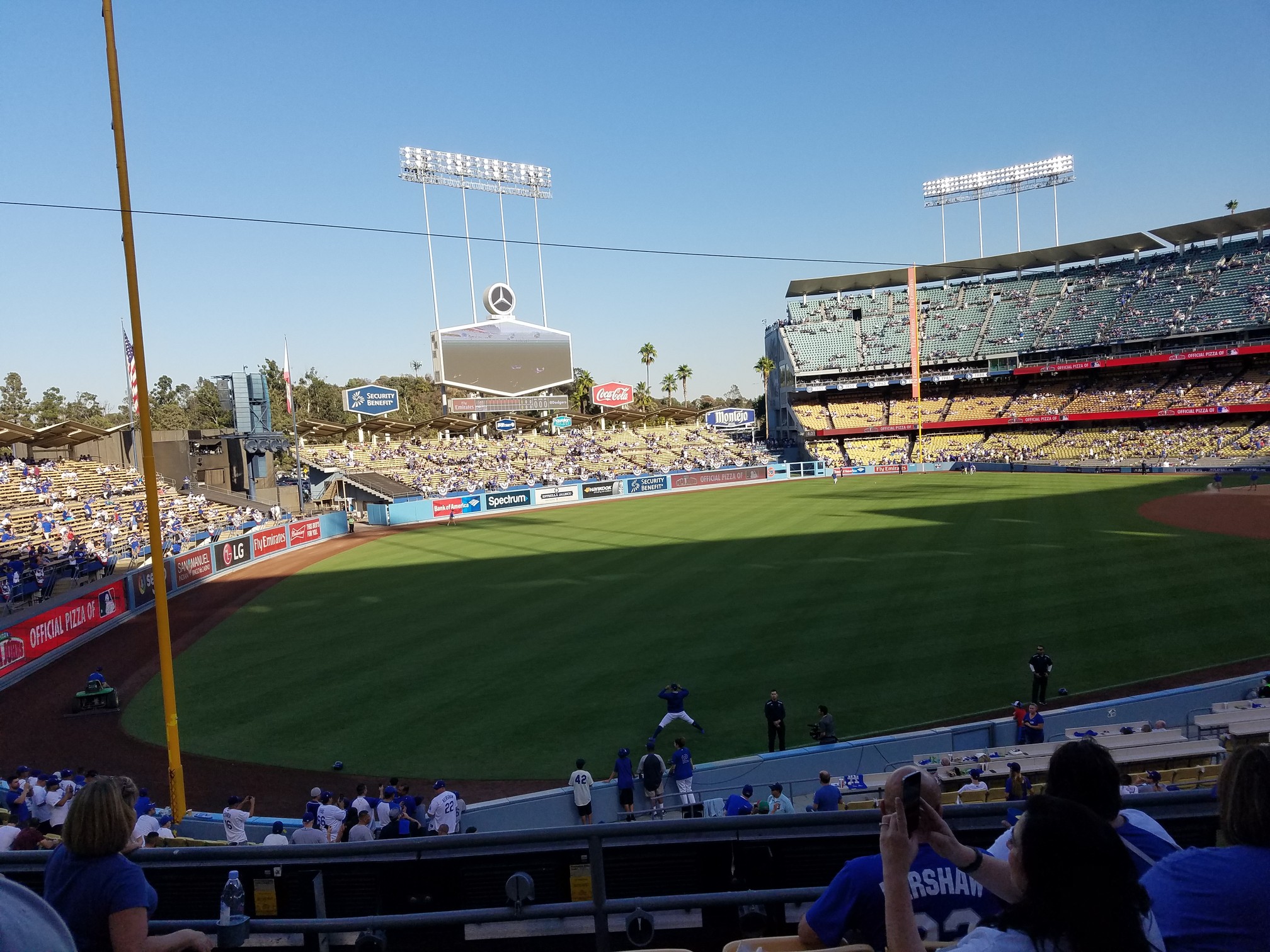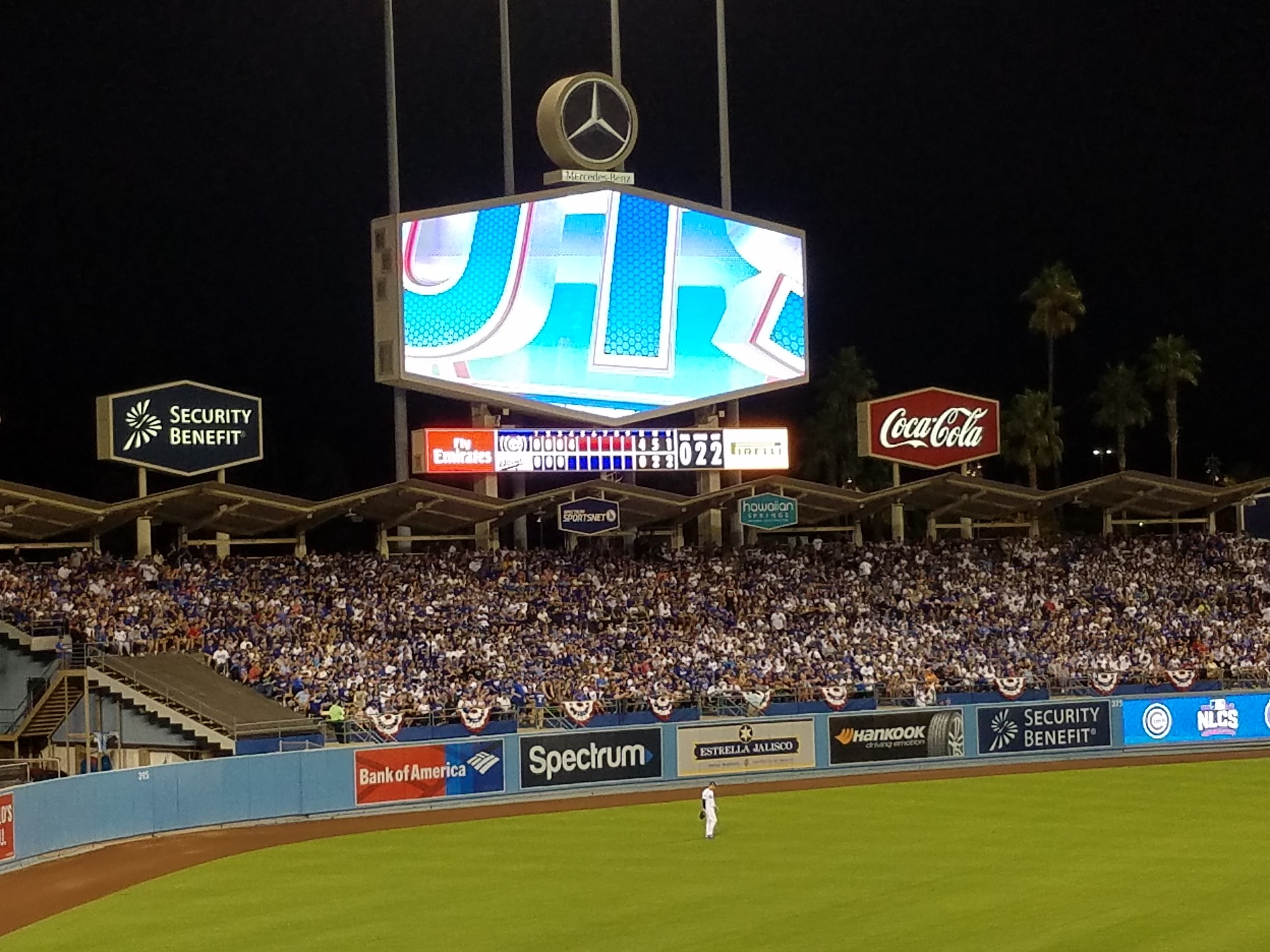Don’t get me wrong here, the overall fan vibe and experience is VASTLY improved over some of the games I’ve attended in the past. Substantially so. The Dodger fans who sat near us in our section were great. Very nice and friendly folks who were happy to laugh and share some stories with you. That being said, the left field outfield pavilion was a demilitarized zone. There were at least 4 fights out there and of course all the fucking ghouls stop watching the game and start watching this pathetic excuse of human behavior.