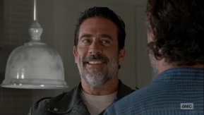 Negan SEEMS amenable, almost. The keyword being “seems”. Let’s ask Daryl. Daryl stays silent. He knows the deal. If he speaks up, if he says yes please let me stay….somebody dies.