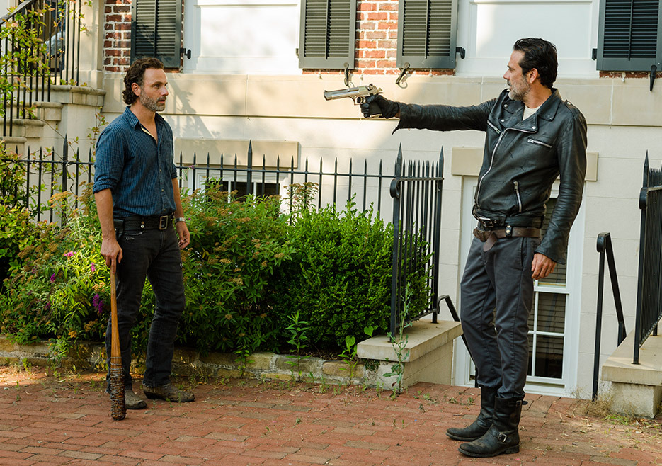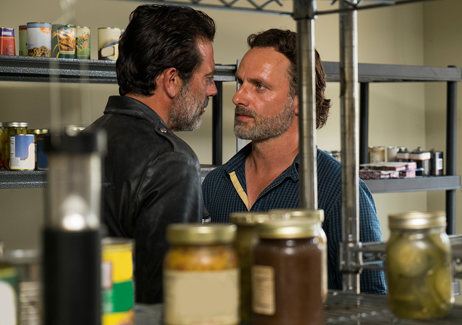And as a little added extra screw you, guess who Negan brought along for the trip? Our favorite hostage, Daryl. And when Rick tries to talk to him, Negan shuts that down immediately. Fortunately, the silver lining here for Norman Reedus (Daryl) is that he didn’t have to learn any lines for this episode.