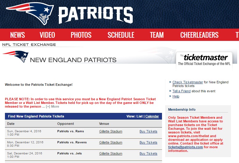 PLEASE NOTE: In order to use this service you must be a New England Patriot Season Ticket Member or a Wait List Member.