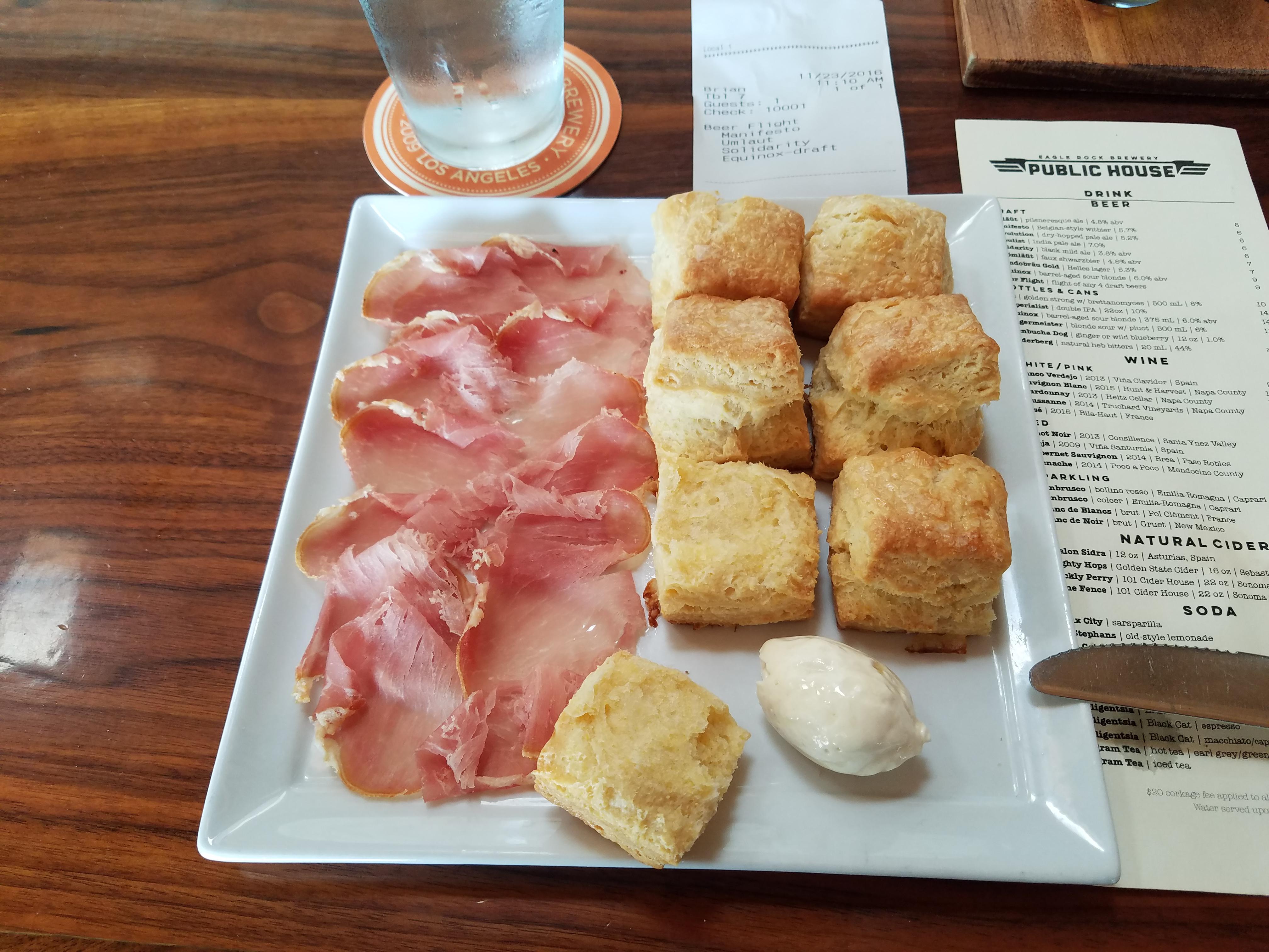 And here’s Balls of Steel from Eagle Rock Brewery, where he also had the good sense to get the meat plate.
