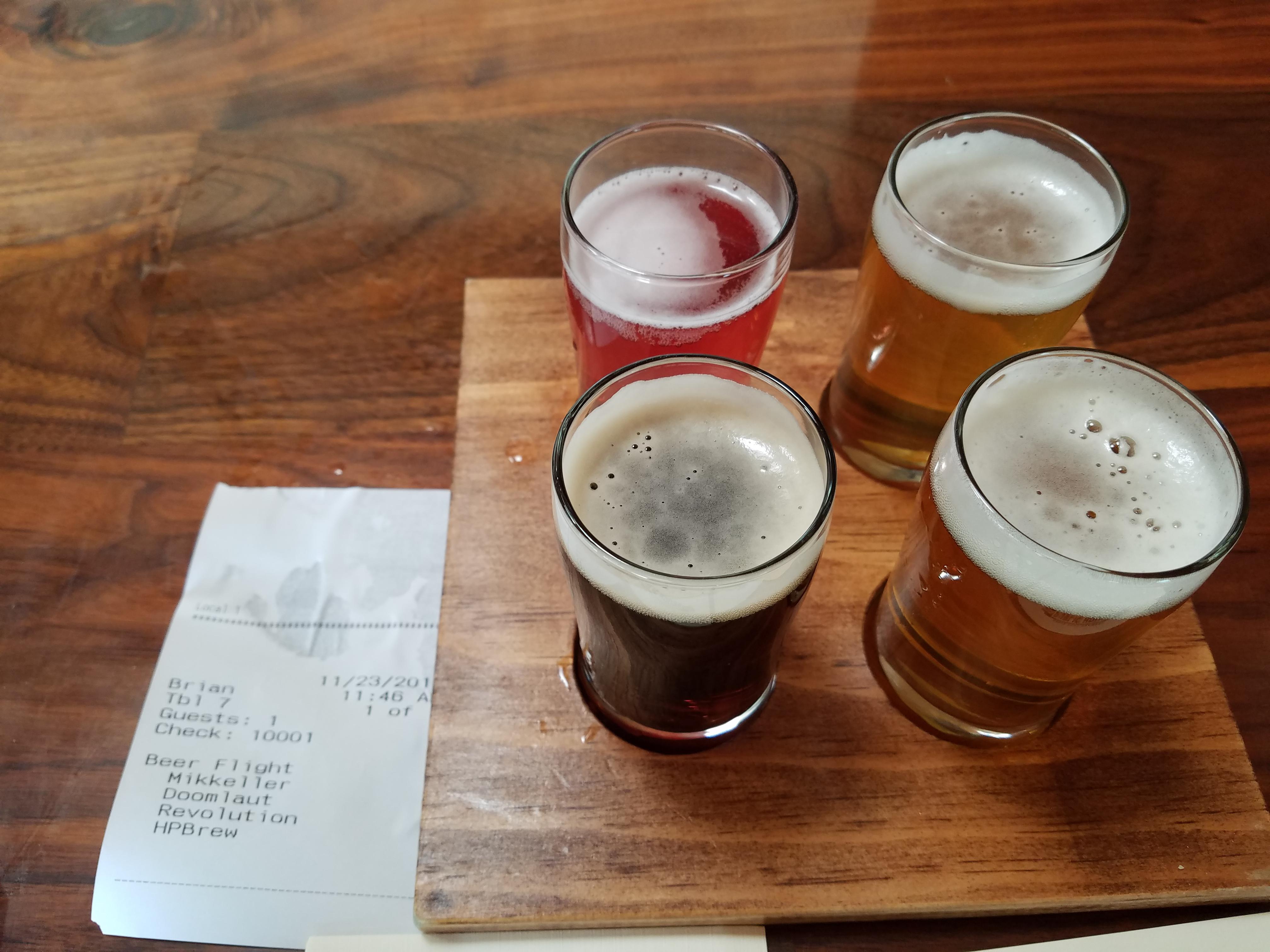 Counterclockwise from the top left, the beers are Mikkeler, Döömläüt, Revolution, and a Highland Park Brewery beer called Slow Internet. Turns out they were out of the last ERB selection, so they gave me this one.