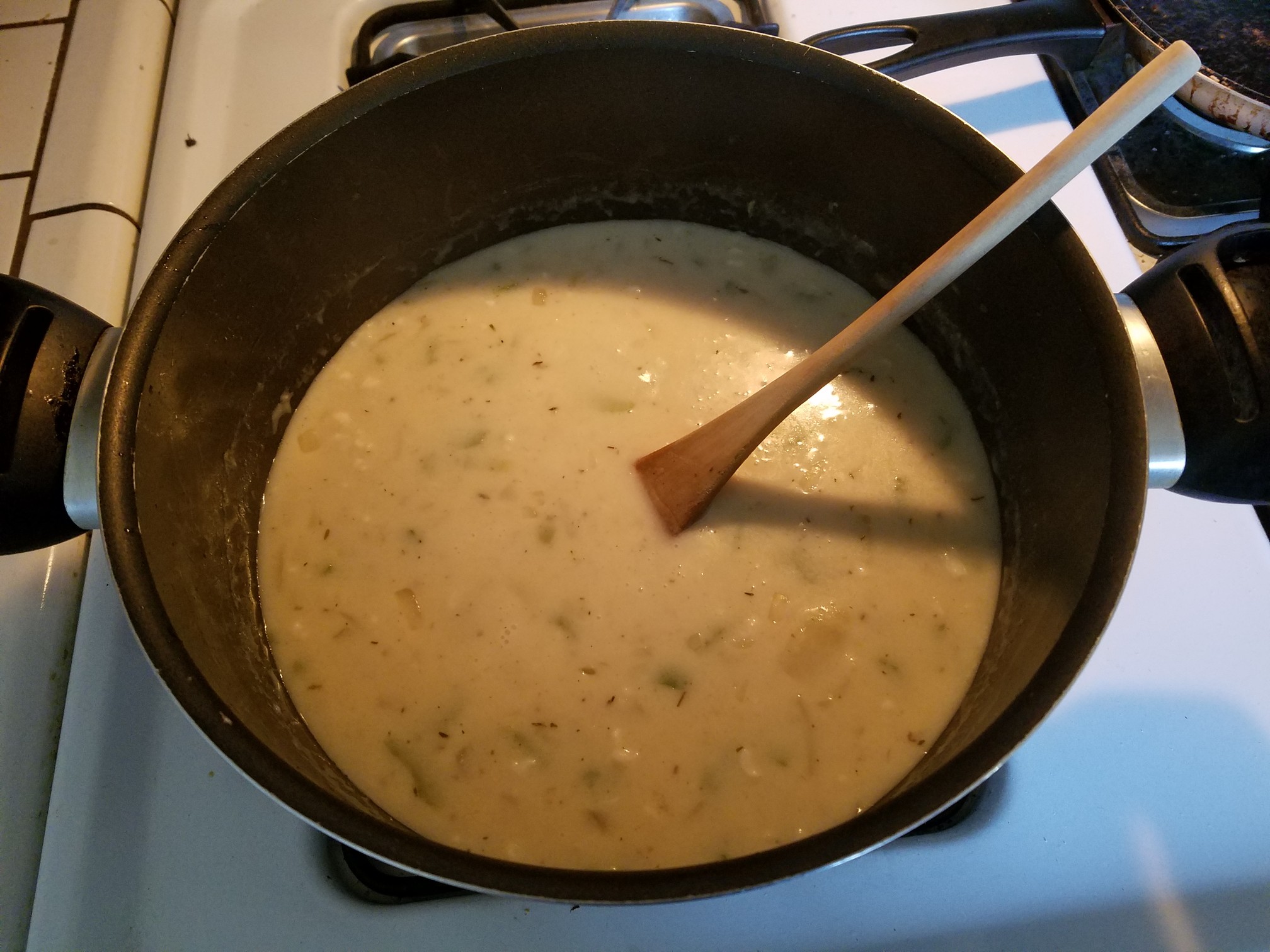 For those who have’t done this before, I will add to make sure and render out as much fat as possible from the bacon. More than once I’ve had a bowl of chowder ruined by chomping down on a big wad of, warm, limp bacon fat. Guhhhh. That is not good eaOWWWW, SORRY GODDAMMIT. That is not good sunday gravy.