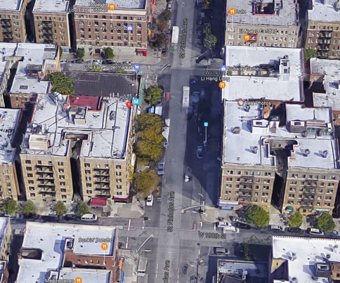 - St. Nicholas Avenue is not a particularly wide road, and the fact that cars were parked on both sides of the street as well as the lampposts dotting the sidewalk made his landing even tighter.