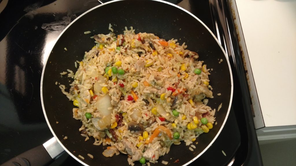 Stir this bad boy up really nice one last time, and let everything cook for another 5 minutes. You shouldn’t be getting much pop left from the oil at this point, and as long as everything is well heated throughout, you’ve got yourself a a finished product!
