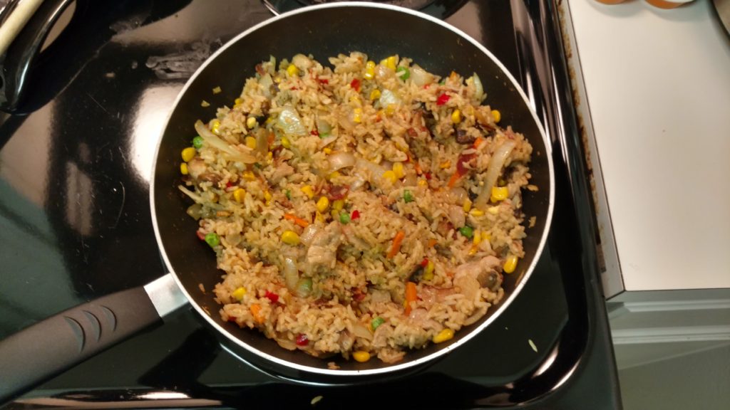 Today, I am going to show you one of my favorites: The Enhanced Fried Rice. I typically prefer going with a chicken fried rice base on this myself, but shrimp, vegetarian or otherwise works just as well. It doesn’t really matter where you get this from either, but the key is that you need enough to work with, without needing to make more rice for padding, as that can take time. Look for something close to about 20 oz for your base. I was able to get all of the ingredients from Trader Joe’s, because I’ve talked myself into thinking that anything I get there is healthy, even when that thing is something like this. As such, all of the ingredients I will be using, with the exception of my choice in sauce, can be found at your (hopefully) local Trader Joe’s.