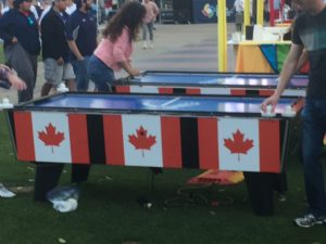 “Tastes” of the world! Fried rice and Egg rolls. Tacos. Terriyaki bowls. Falafels. Poutine and air hockey. Didn’t catch what Cuba or Italy had available.