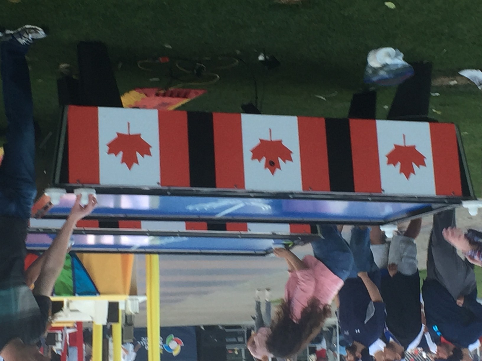When we heard the anthems begin, we stopped to acknowledge them. We were the only people to stop. They played the anthems of both countries playing and then they played the US national anthem. Not sure what to make of that.