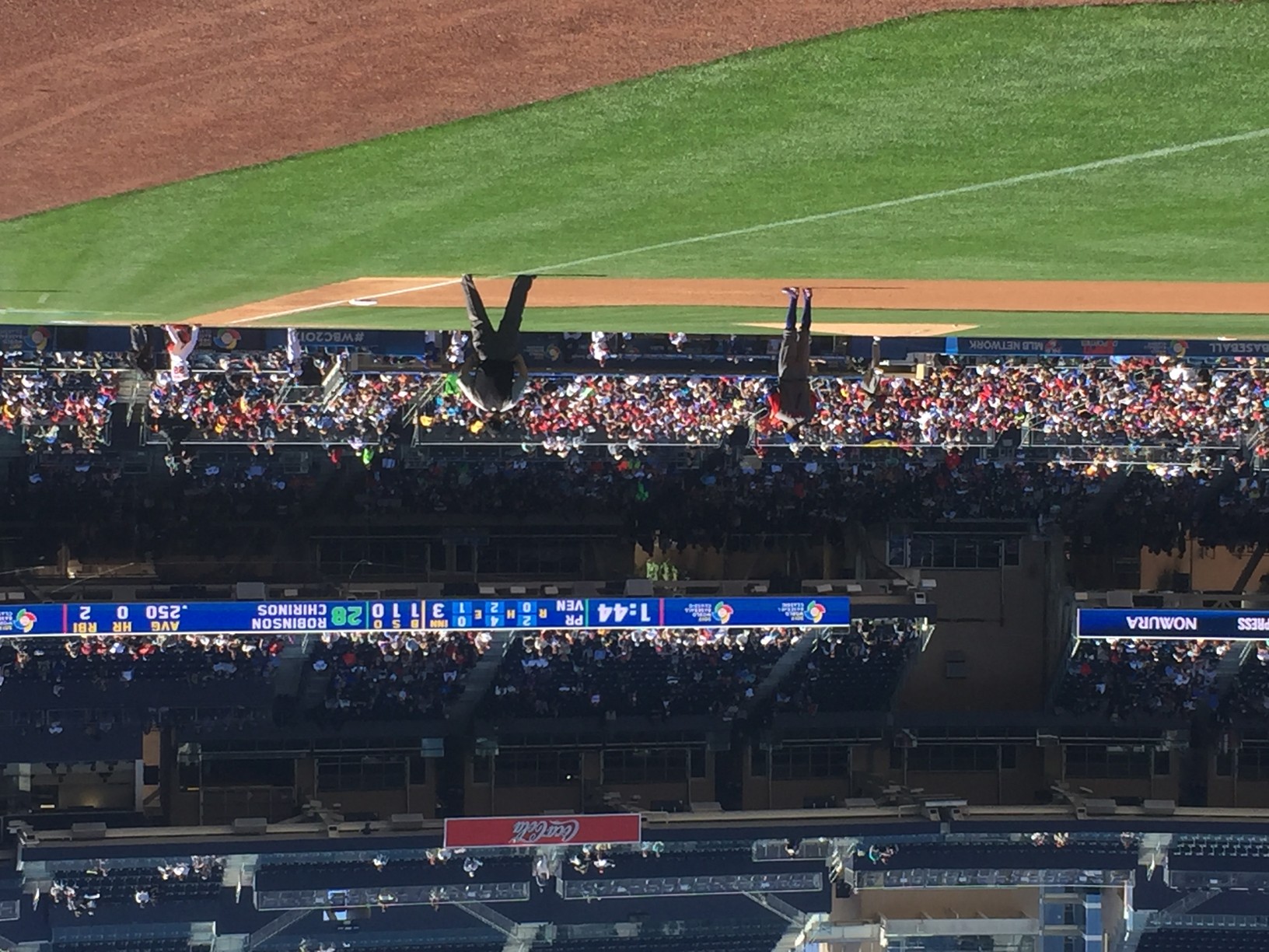 I grabbed beers after making my way into the park. As I was walking to my seats, I was about 10 rows away and Giancarlo Stanton hits a line drive foul that a guy catches in his glove three rows behind my seats. Now I’m not saying I’d have caught it but damn if I didn’t get the chance to try. 30+ years of attending baseball games and I’m still waiting for that first specific souvenir. Although, since I’m currently rehabbing from a fractured wrist, not trying to catch a line drive off the bat of Stanton is not the worst thing.