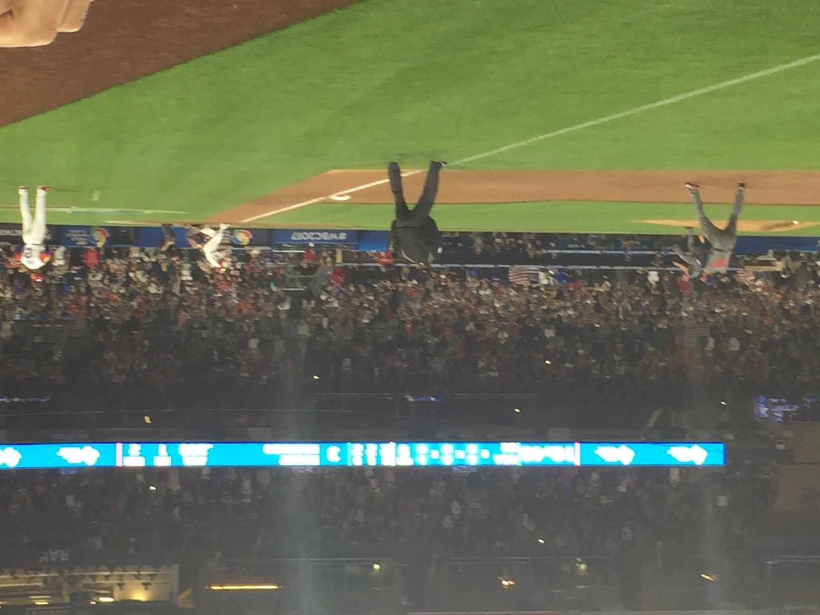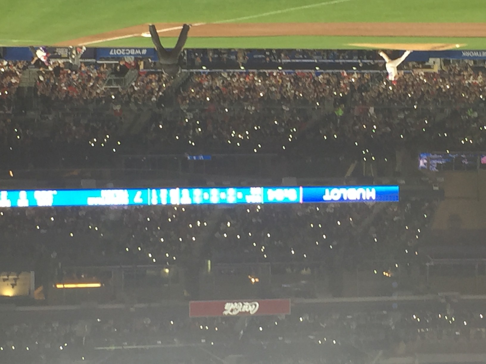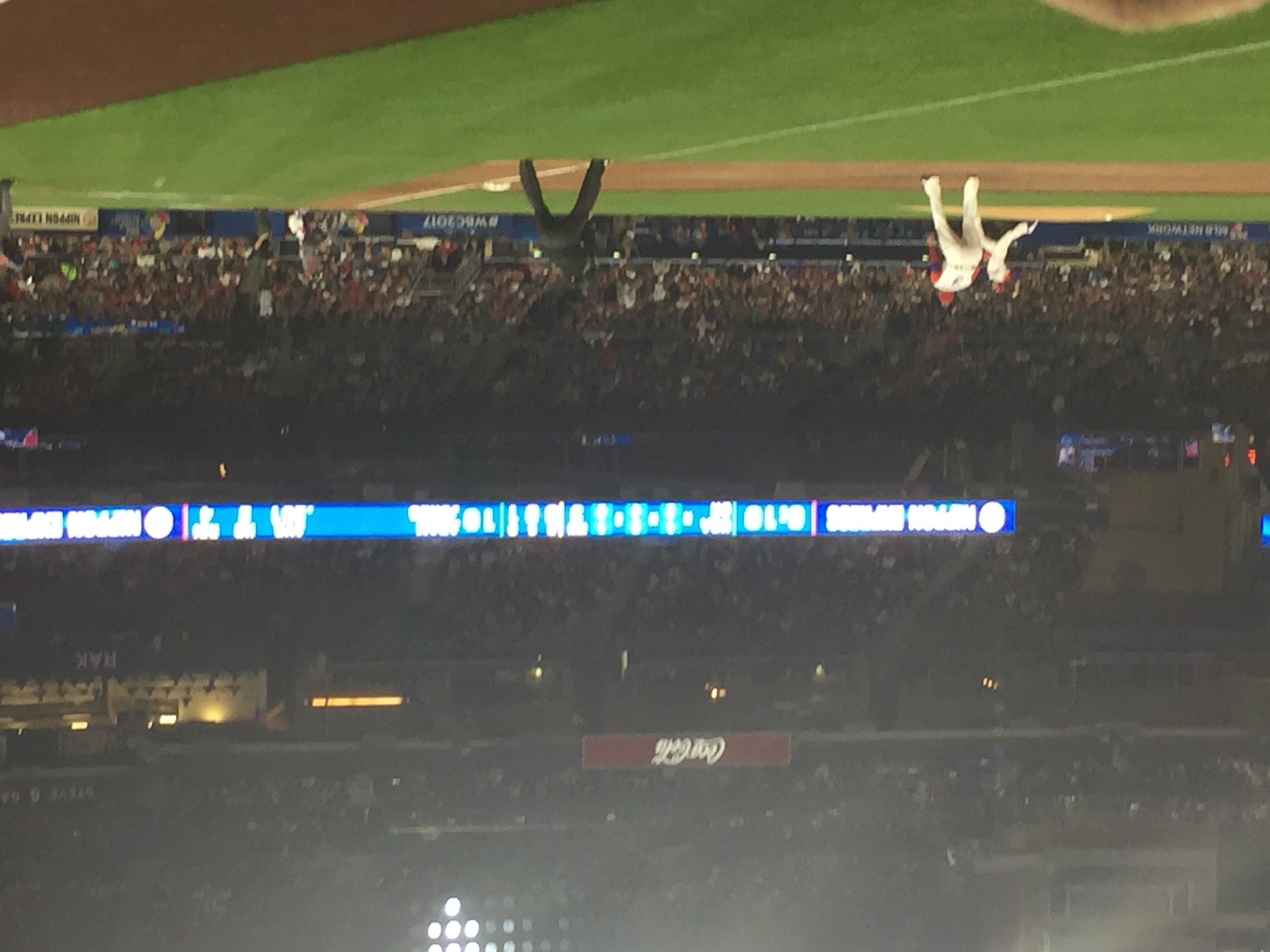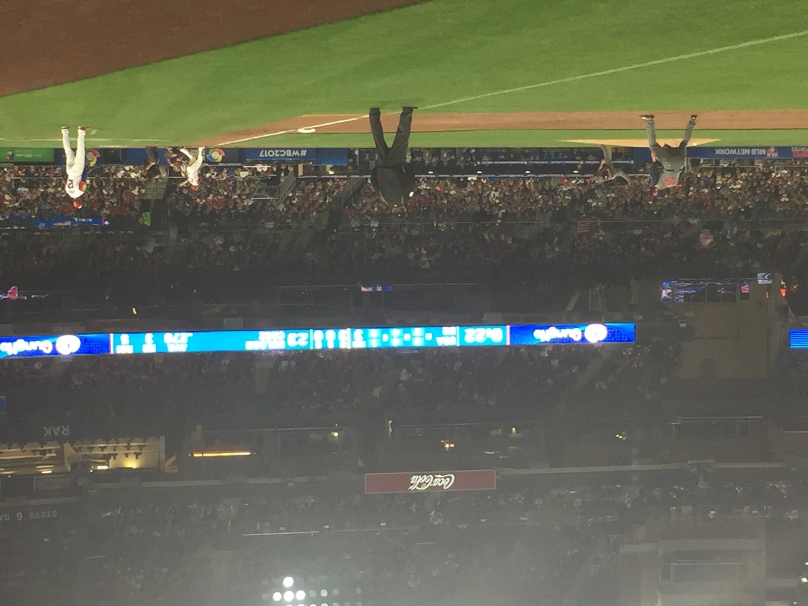 The picture doesn’t really do it justice but the fans were using the strobe light effect on their phones to distract the players. Couldn’t figure out if it was US or Dominican fans. It made for a cool visual either way.
