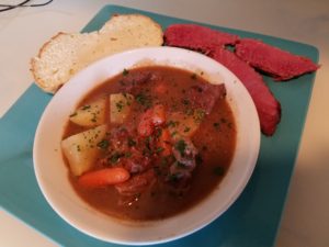 Ladle the stew into bowls and serve alongside some crusty bread. My oldest daughter made Irish soda bread again which is according to family tradition. Yes, I did grab some more corned beef too.