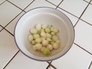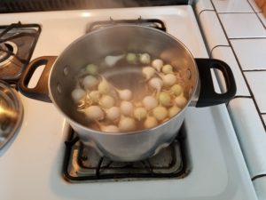 Before getting started we need to address those pearl onions. If you’ve never worked with pearl onions before they look like a massive pain in the dick to peel. There is a trick to that though.
