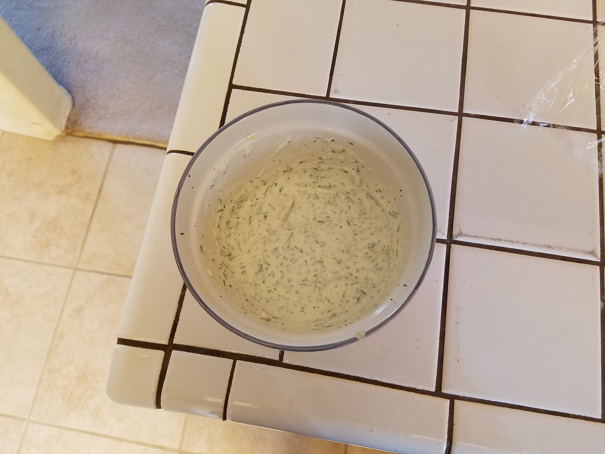 Yogurt tahini garlic dill sauce.