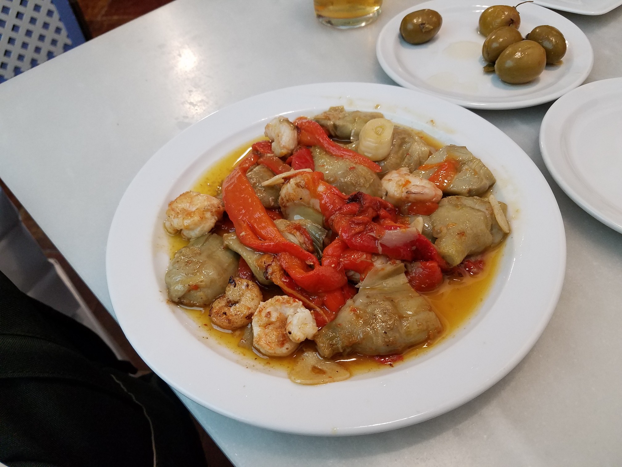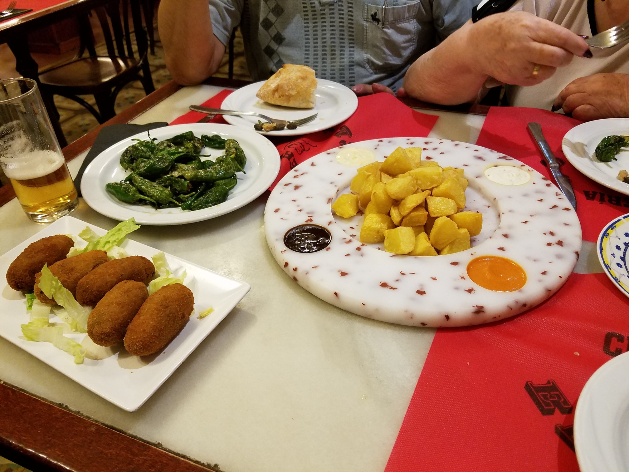 One of the great traditions that Spain has bestowed on the world is the siesta. Another is the tapa. This is a great way to eat. The concept is simple: You go to a bar or taberna and order a drink (beer was cheaper than sodas, btw) and what is essentially an appetizer. You consume them both, have a chat with your friends, and move on to the next place which could be next door, across the street, or blocks away. Rinse and Repeat.