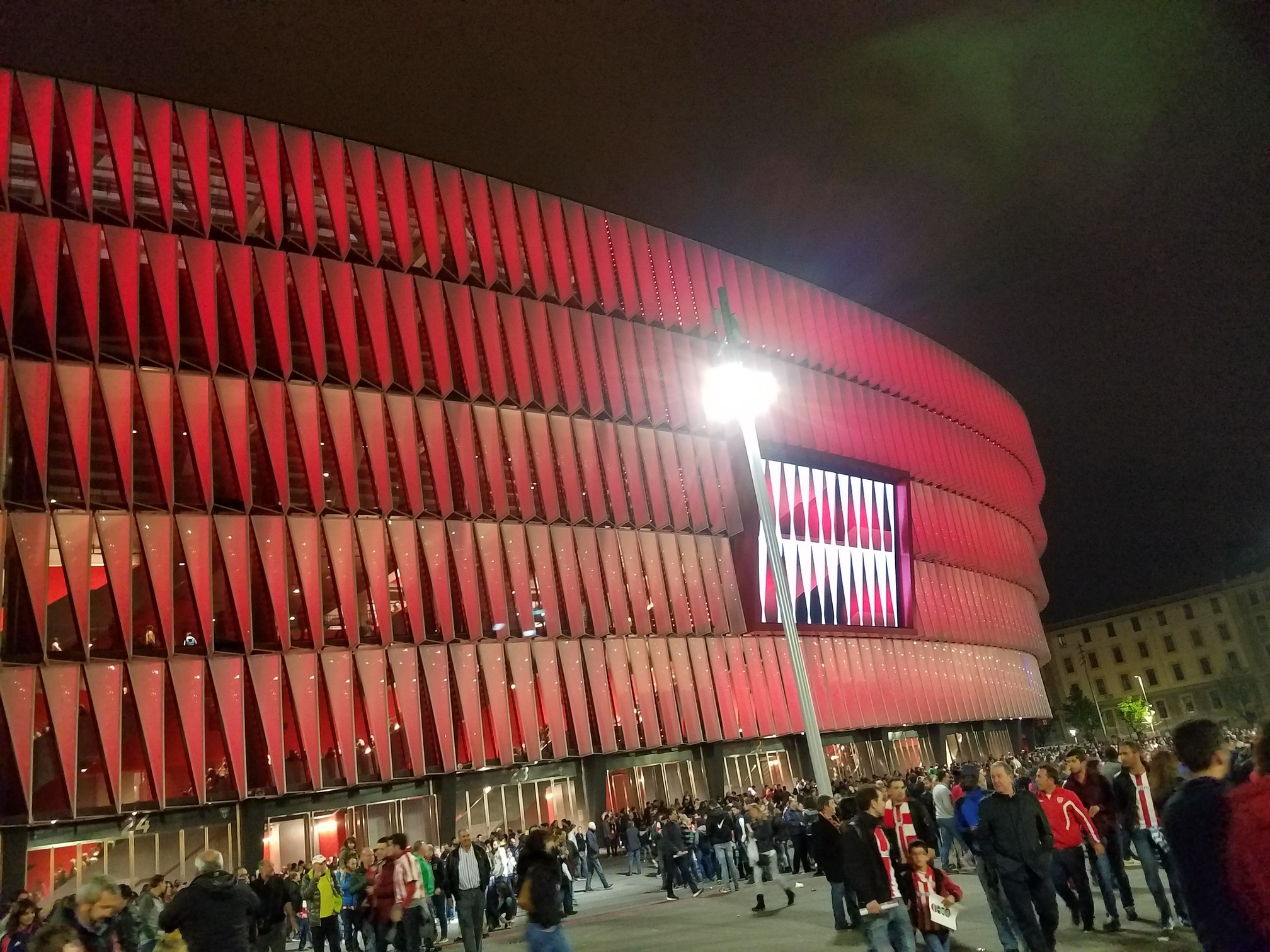 On the weekend we were there, Real hosted the Madrid derby against Atlético Madrid. Since it is a highly popular game, it was sold out and any tickets available on the secondary market were outrageously expensive. Looking at the schedule, I noticed that a game would take place in Bilbao on our last Friday night in Spain. A quick change of plans/hotels and a purchase of 3 VIP Area tickets later, we were set to go to the new San Mamés stadium in Bilbao, home to Athletic Bilbao.