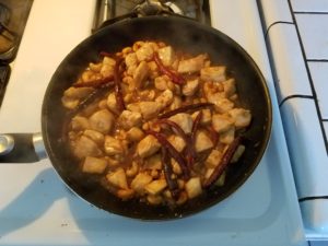 We only need to cook for a few minutes since we just want to tighten the sauce up. Remember the additional corn starch? That’s for the tighten up. As most of you know corn starch can be used instead of a roux in some sauces as a thickening agent. Tighten that shit up!