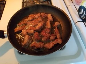 When the beef has browned remove from the skillet and place in a bowl. Yes, I’m aware that you ate a piece of the cooked beef. STOP TEMPTING ME SATAN!