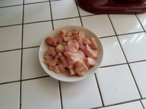 1 1/2 pounds of boneless, skin-less chicken breast or thighs cut into cubes.
