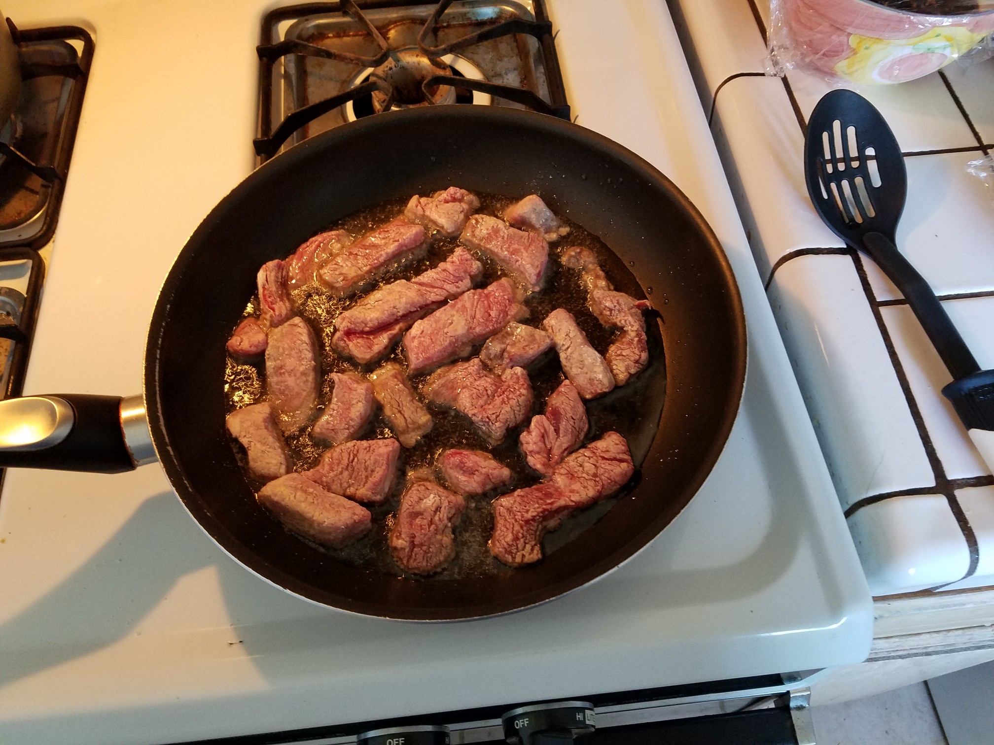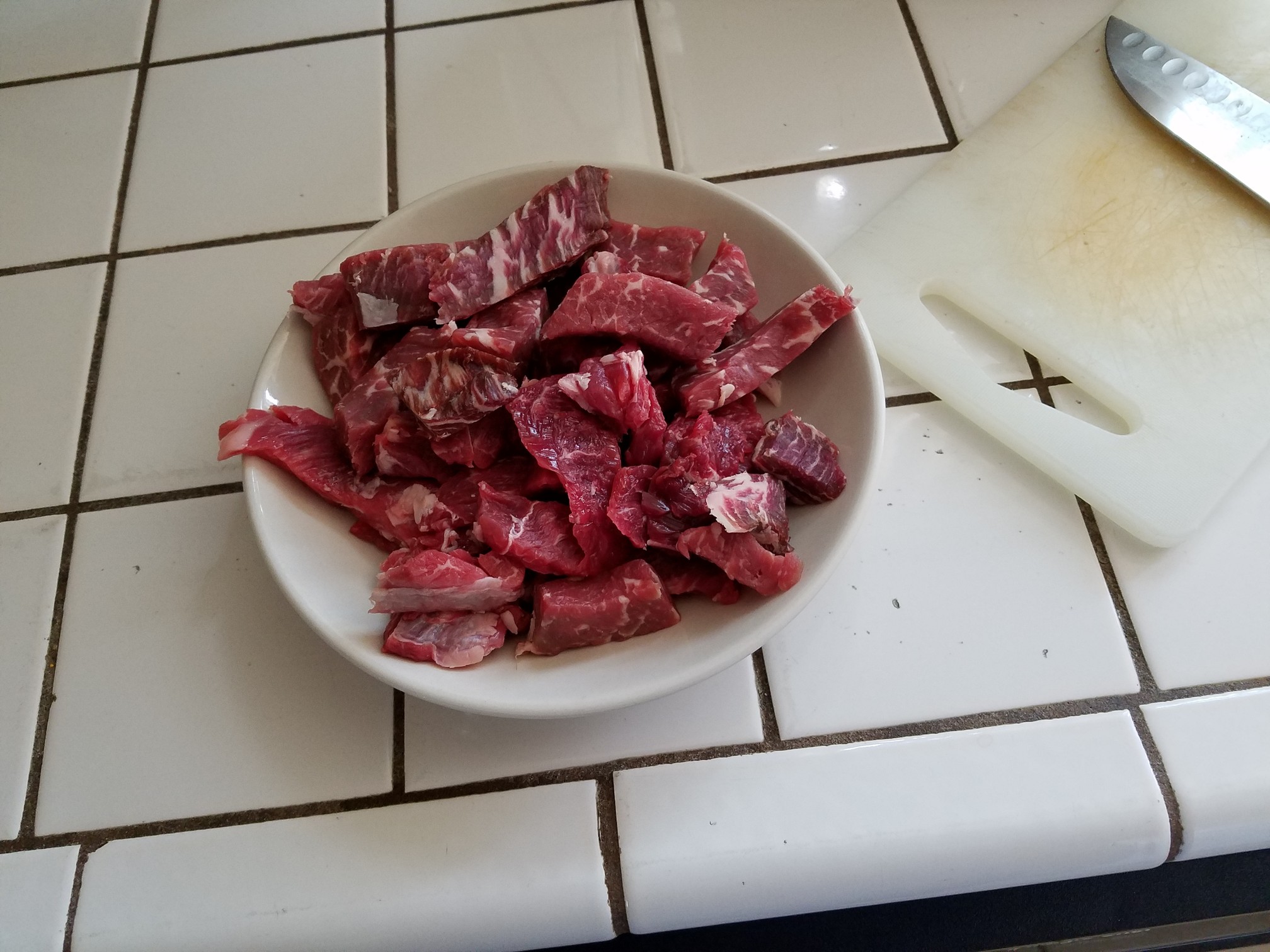 1-2 pounds of rib eye cut into cubes and trimmed of most of the fat.
