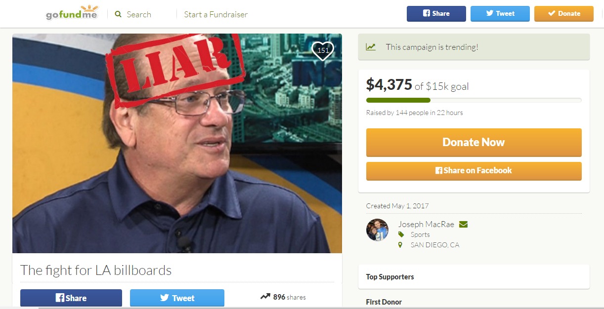 My plan is to rent a few billboards in LA that will be anti-NFL and anti-Dean Spanos. All of this just in time for the first ever “LA Chargers” home opener vs the Miami Dolphins on September 17th, 2017. The Chargers have three home games in a row and the billboards will be up not just for the first game but all three.