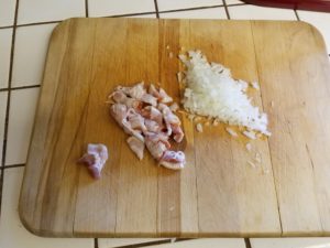 Get yourself another skillet and cook up that bacon. Remember we are actually making this gravy while we are cooking the schnitzel. I made 4 schnitzel and the timing of the cooking was perfect for the gravy to finish at the same time.