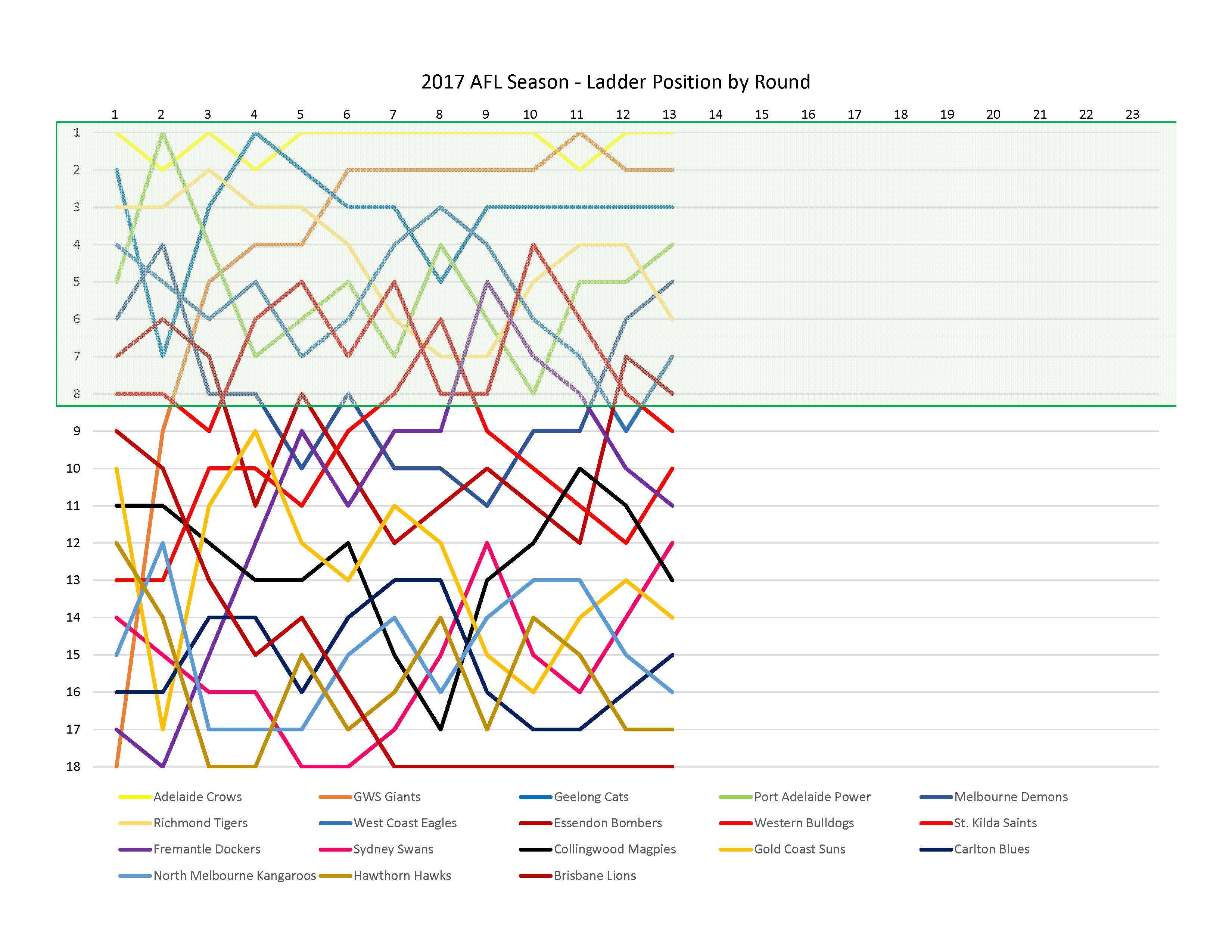 It’s really weird, but true. Only 2 games separate 17th-placed Hawthorn from 8th-placed Essendon. Considering there are 10 games left in the Home and Away season, anything truly can happen.