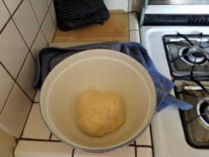 I picked up a good tip from America’s Test Kitchen. Put a Pyrex bowl of boiling water in a cold oven – instant proofing box!