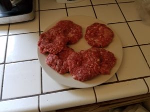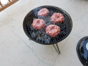 Then I fired up my charcoal grill. I will let Mr. Nobyl extol the many virtues of the propane grill but I’m an old school “fire up the charcoal” guy who loves the added flavor that charcoal gives to meat. Particularly a grilled burger. Let’s get these on the grill.