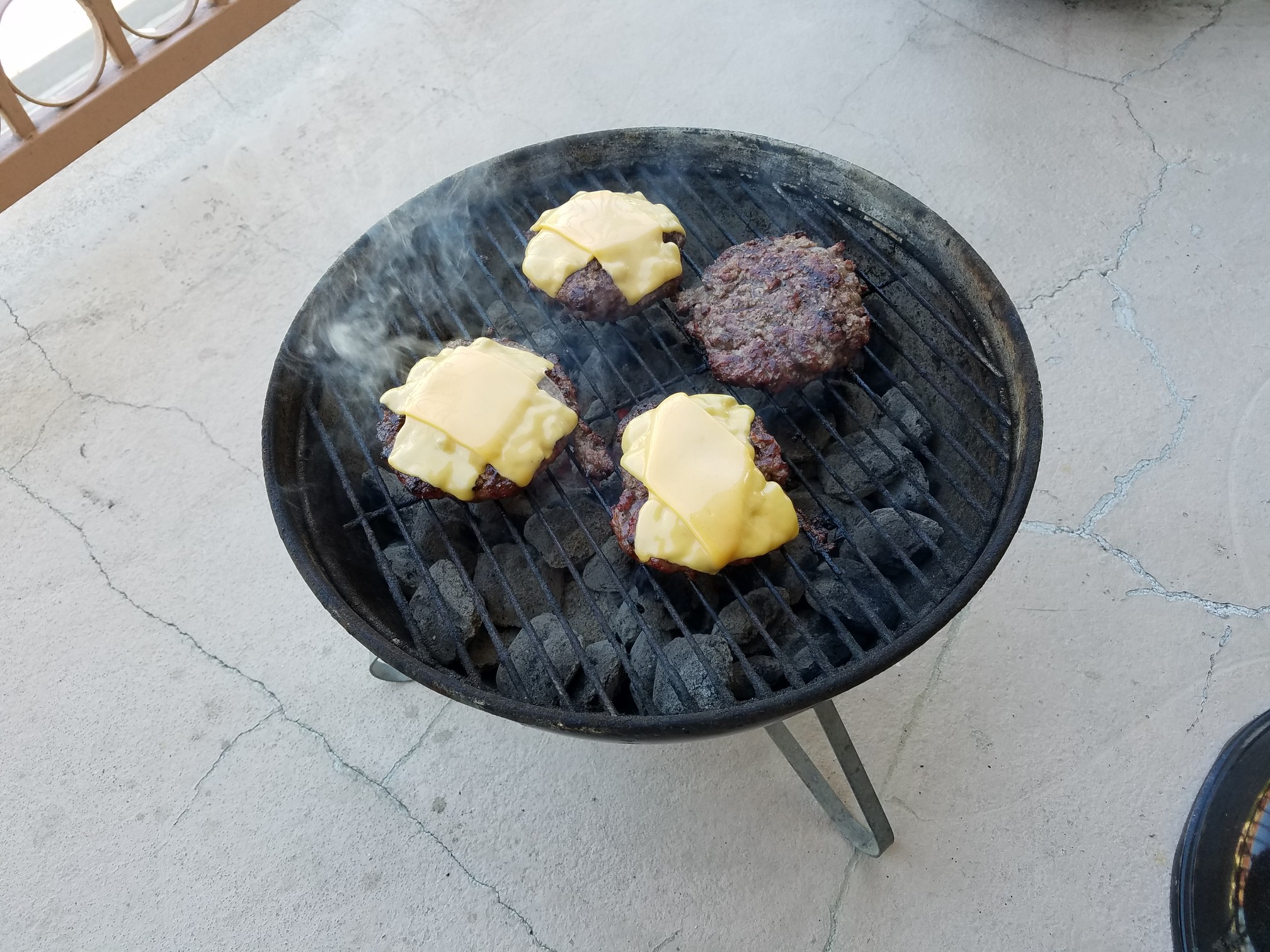 That’s the shit right there. Use caution here. Due to the extra fat content of the burgers, these WILL flare up like a motherfucker so stay close by and put on the charcoal lid if needed to stop the flare ups. After a couple of minutes turn the burgers over and season with salt and pepper. This was the only time seasonings were added to the burgers. Slap on your choice of cheese(s). For beta test #1 of this I used plain old American cheese.