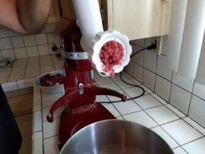 Get out your brand spanking new meat grinder attachment and attach it to the stand mixer. Be sure to unplug the mixer when changing attachments. Safety first kids! I’m going to let Romonobyl’s post walk you through the grinding, packaging, storing techniques since he did it first and definitely better. Let’s just say I got my grind on!
