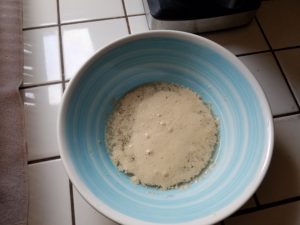First thing we are going to do is proof the yeast. You should remember this from the linked French Bread/Banh Mi post.