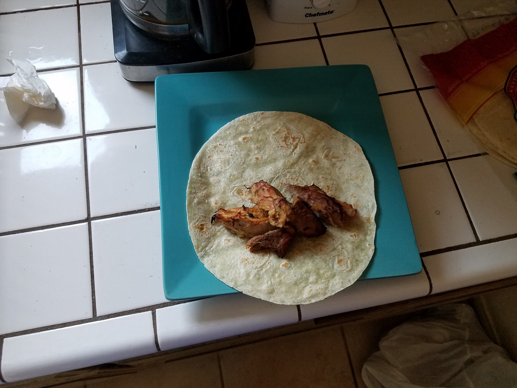 Well one and two attempted abortions. The top tortilla worked just like it was supposed to and I was able to half-ass kinda salvage 2 more that physically looked fucking miserable but still were kind of tasty.