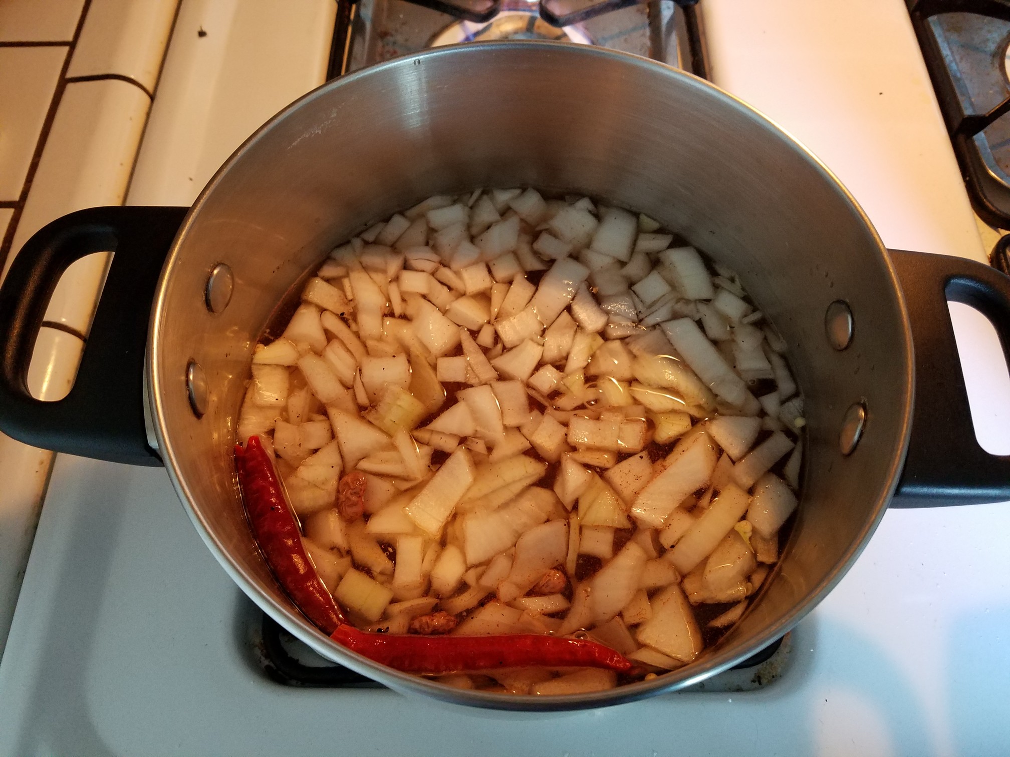 Oh fucking hell yes. That’s the good shit right there. Remove the 2 chile de arbol pods or fuck it, leave them in if you want to. Ladle these up, serve with a little salsa or hot sauce or even dress them with some shredded cheese and party down Garth!