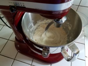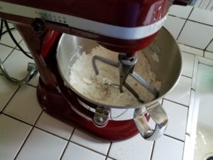 Next add in the lard and mix until incorporated with the dry ingredients. I used the Kitchenaide which did the job masterfully.