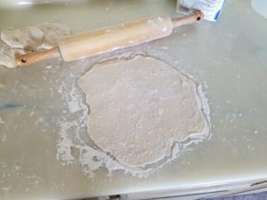 Next get out a floured rolling pin and roll out a tortilla.