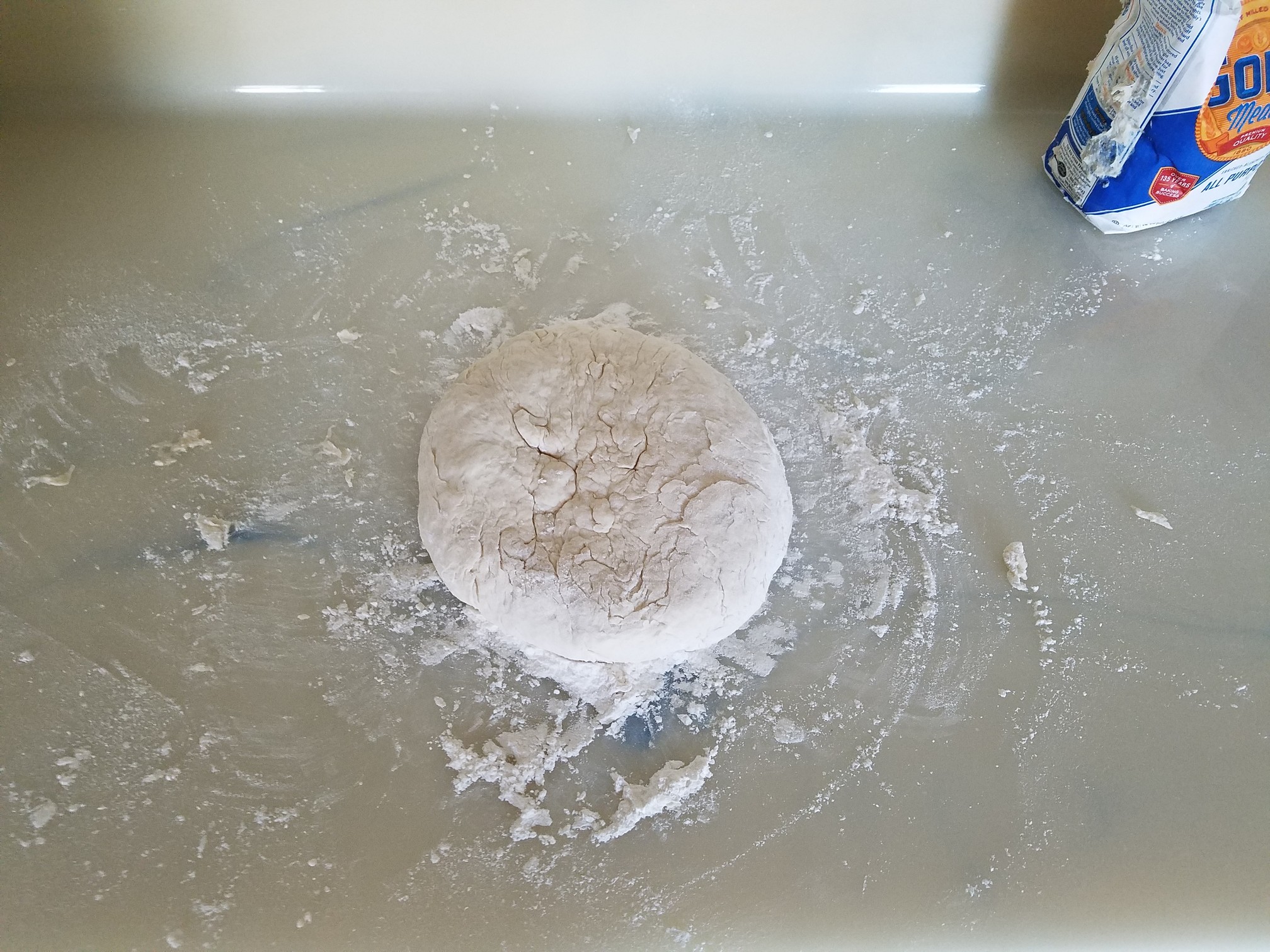 Place the dough onto a floured surface and give it a quick knead or two. I noticed the dough was a little sticky so I added in some flour until it formed a good looking dough. No, the extra flour didn’t hurt a fucking thing.