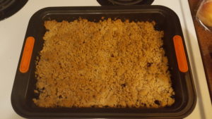 Then pour on the crumble on top of the berry mixture. Bake (heh) for 1 hour until brown.
