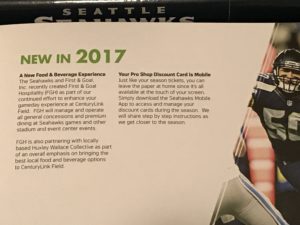 One possible improvement spotted in the fan guide: the Seahawks have apparently brought the food & beverage operations in-house.
