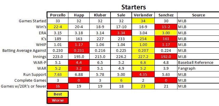 note: Porcello won. His best stat was what the rest of his team did. And, one of the “voters” submitted their ballot with “Jason” instead of “Justin” Verlander. And more than one DIDN’T EVEN PUT HIM ON THE BALLOT! Every baseball media writer should be round up and shot.)
