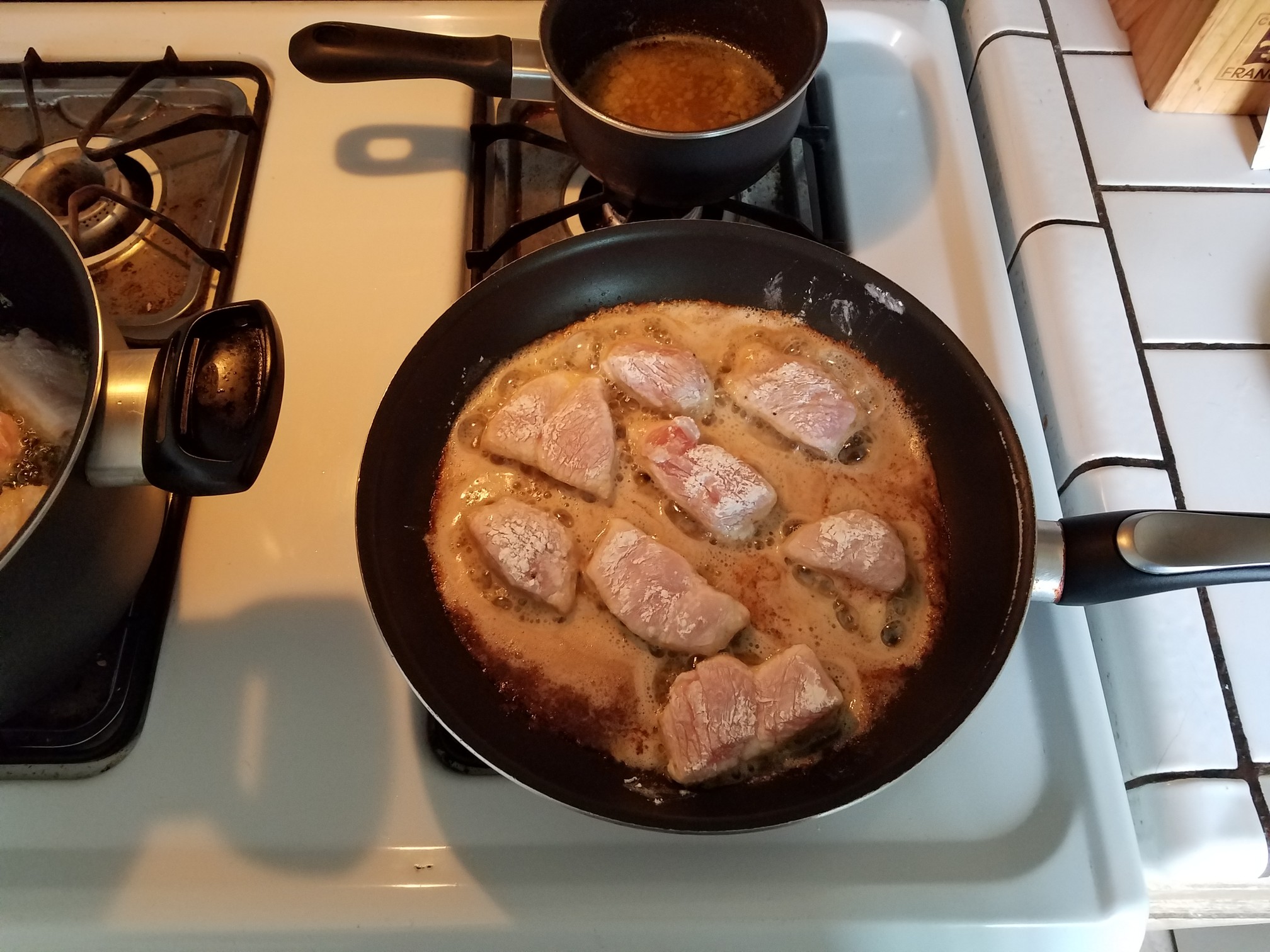 Get some oil going in a pan and let’s get to cooking these up.