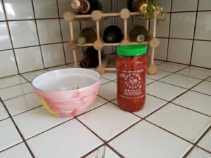 It’s very similar to sambal oelek. The picture may look familiar because the garlic chili sauce I used is made by Huey Fong foods. Yep, the same fuckers that make sriracha. I love this stuff. So good. Great to dip an egg roll into.
