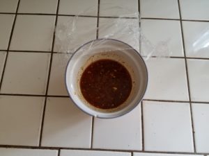 This one is a yeah right original. Basically I still had a lot of Asian sauce elements on hand and I decided to make a sauce out of them. I’ll try to remember what ever the fuck I put in there.